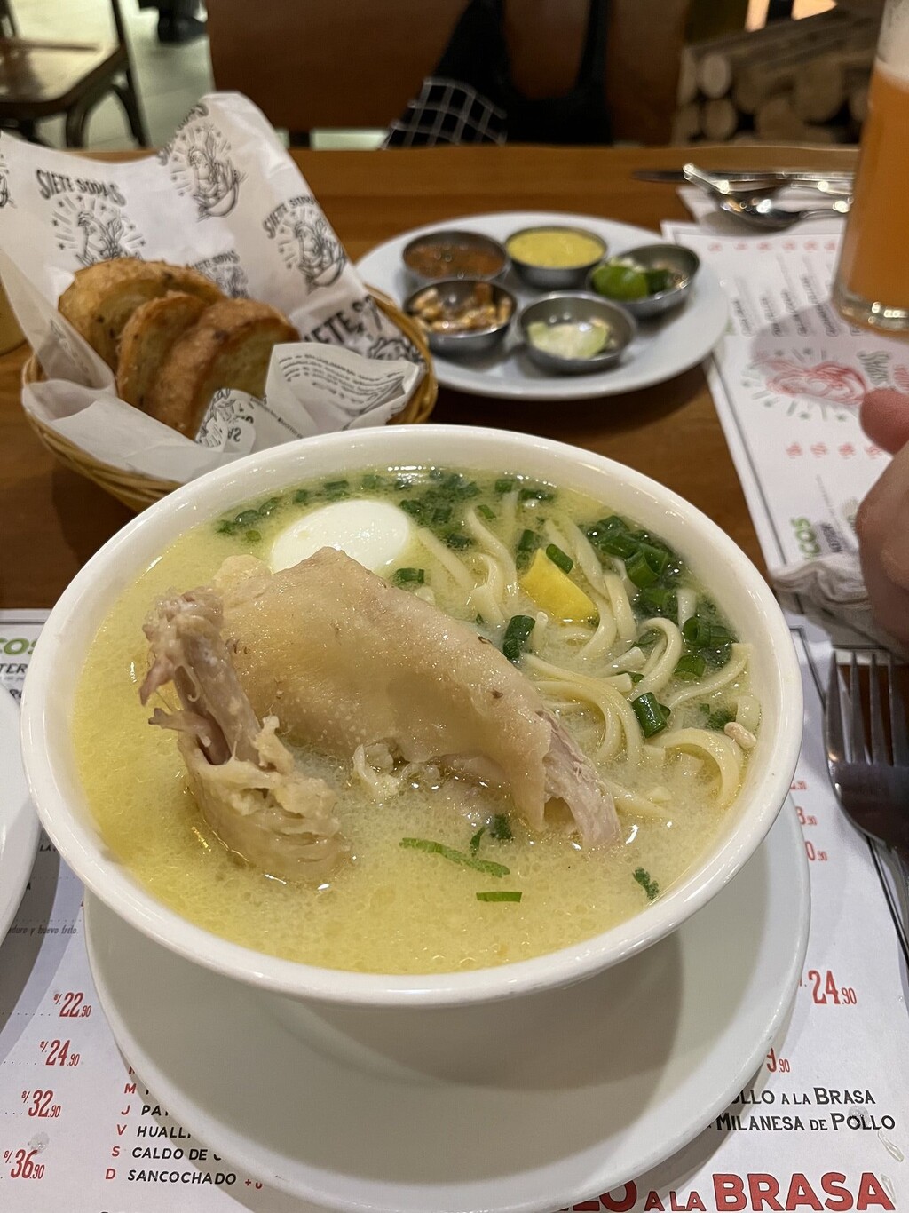 Ein Restaurant, in dem es, wie der Name schon sagt, jeden Tag sieben verschiedene Suppen gibt. Das Konzept war so erfolgreich, dass inzwischen einige Filialen der „Siete Sopas“ Restaurants in der Stadt aufgemacht haben. Der deutsche Begriff „Suppe“ wird dem Angebot des Restaurants jedoch nicht ganz gerecht. Peruanische „Sopas“ sind keine dünnflüssigen Vorspeisesüppchen, sondern meist herzhafte, sättigende Eintöpfe, die aus Fleisch, Reis oder Nudeln und Kartoffeln gekocht und je nach Suppe unterschiedlich gewürzt sind. Ich wollte „Siete Sopas“ unbedingt besuchen, um dort meinen Lieblingseintopf „Caldo de Gallina“ zu essen. Caldo de Gallina ist ein typisches Gericht der peruanischen Küche und besteht aus Kartoffeln, Nudeln, Hühnchen und Brühe. Essenzieller Part dieses Gerichtes sind aber die verschiedenen Toppings, die dazu gereicht werden. Frische Limetten, ein hart gekochtes Ei, fein geschnittene Frühlingszwiebeln, scharfe rote Chilisoße und salzig, knuspriger Mais, der „Canchita“ genannt wird. Bei „Siete Sopas“ werden alle Toppings liebevoll in kleinen Schälchen zum Eintopf gereicht. Zusammen ergibt dies eine wunderbare Geschmackskomposition! Wir kommen auf jeden Fall ins „Siete Sopas“ zurück, um die restlichen 6 Suppen auch zu probieren.