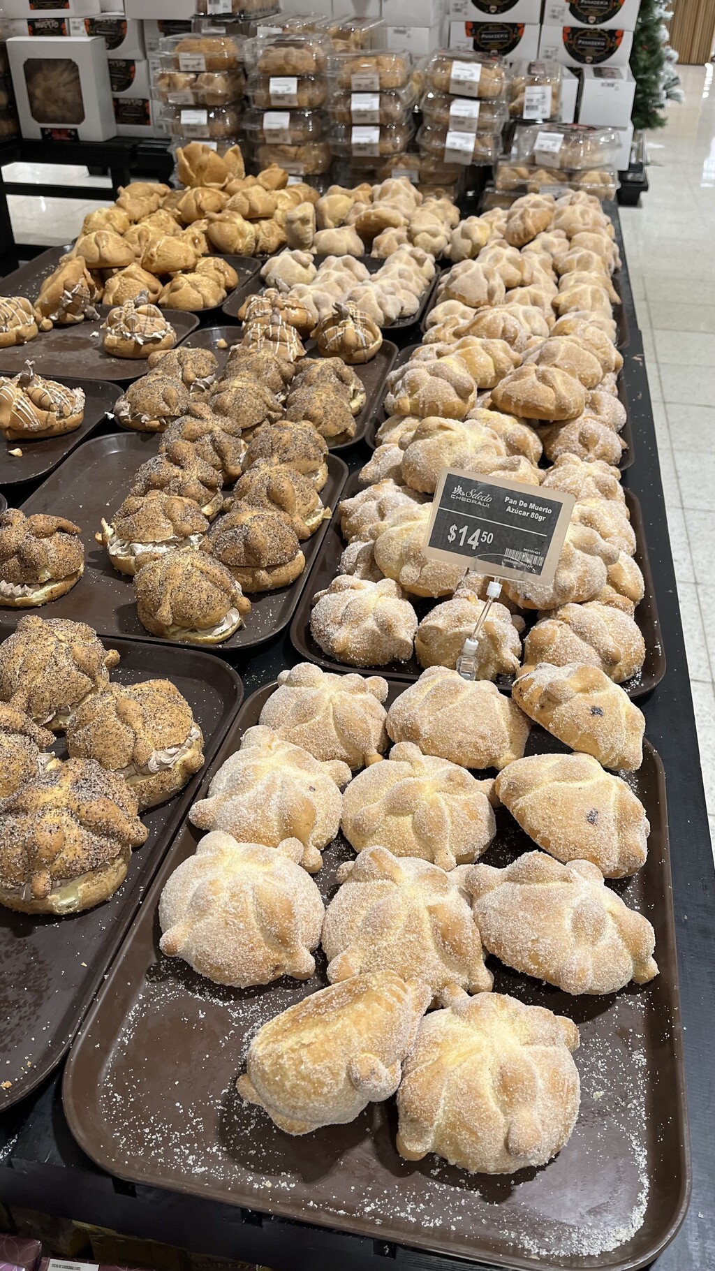 Glücklicherweise befanden sich in unserem Stadtviertel große Supermarkt, viele kleinere Märkte und noch mehr Street Food Stände. Während wir in einem gut sortierten Supermarkt einkauften, fiel mir eine Ecke des Ladens besonders auf: die hauseigene Bäckerei, die verschiedene Brotarten, Kuchen, Donuts, Kekse und noch viel mehr anbot. Nachdem wir gerade einen Monat in Kolumbien verbracht hatten, wo es selbst in den Großstädten schwierig war, Brot und Backwaren aus Weizen und nicht Mais zu finden, war die Backabteilung im mexikanischen Supermarkt ein Traum für mich! Selbstverständlich kauften wir gleich einen großen Laib Brot und probierten uns in den nächsten Wochen auch durch die süßen Backwaren, die alle super lecker waren.