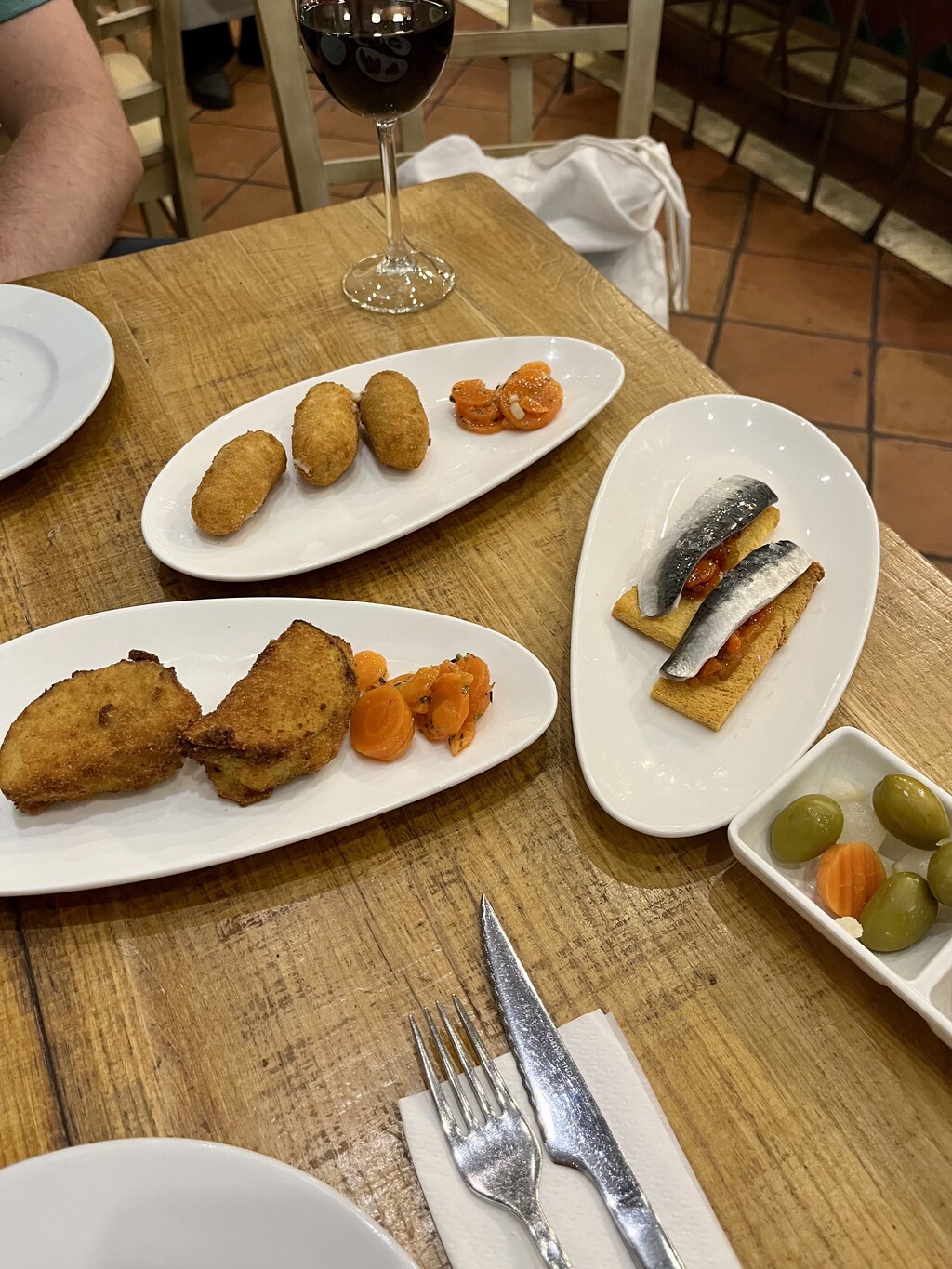 Was bei keinem Spanien-Trip fehlen darf, sind Tapas. Tapas sind kleine Gerichte aller Art, die kalt (z.B. belegte Brote oder Oliven) oder warm (z.B. gegrilltes Fleisch oder frittierte Kroketten) sein können.