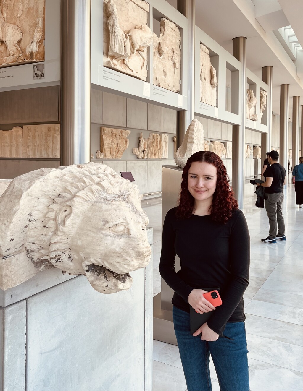 Luckily, my favorite exhibit (a marble lion’s head) was in an area where photos seemed to be allowed. I liked the lion’s head so much that I decided not only to photograph it, but also to draw it in my sketchbook. The great lion’s head was a decoration for the roof of a temple (the Parthenon). A few weeks later, when I had also visited the actual Acropolis above the city, I discovered there, high up on the roof of the Parthenon, the replica of “my” lion’s head from the museum.