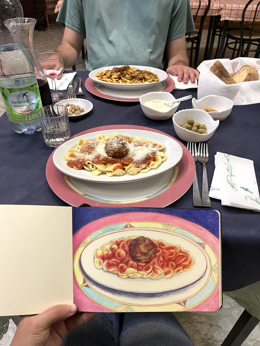 Since there is a particularly large amount of fresh vegetables to buy in Grottole in summer, Christoph and I cooked a lot at home during our time in the village. Although the village is quite small, Grottole also has a few restaurants, of which “Bar Quaranta” was our favourite. So whenever we weren’t cooking we would go to Bar Quaranta for dinner.