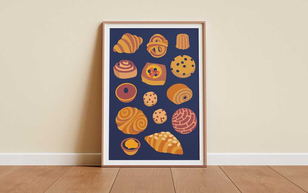 I created this art print of my favorite pastries in a clean, minimalist style – a visual language well-suited for contemporary brand and packaging design.