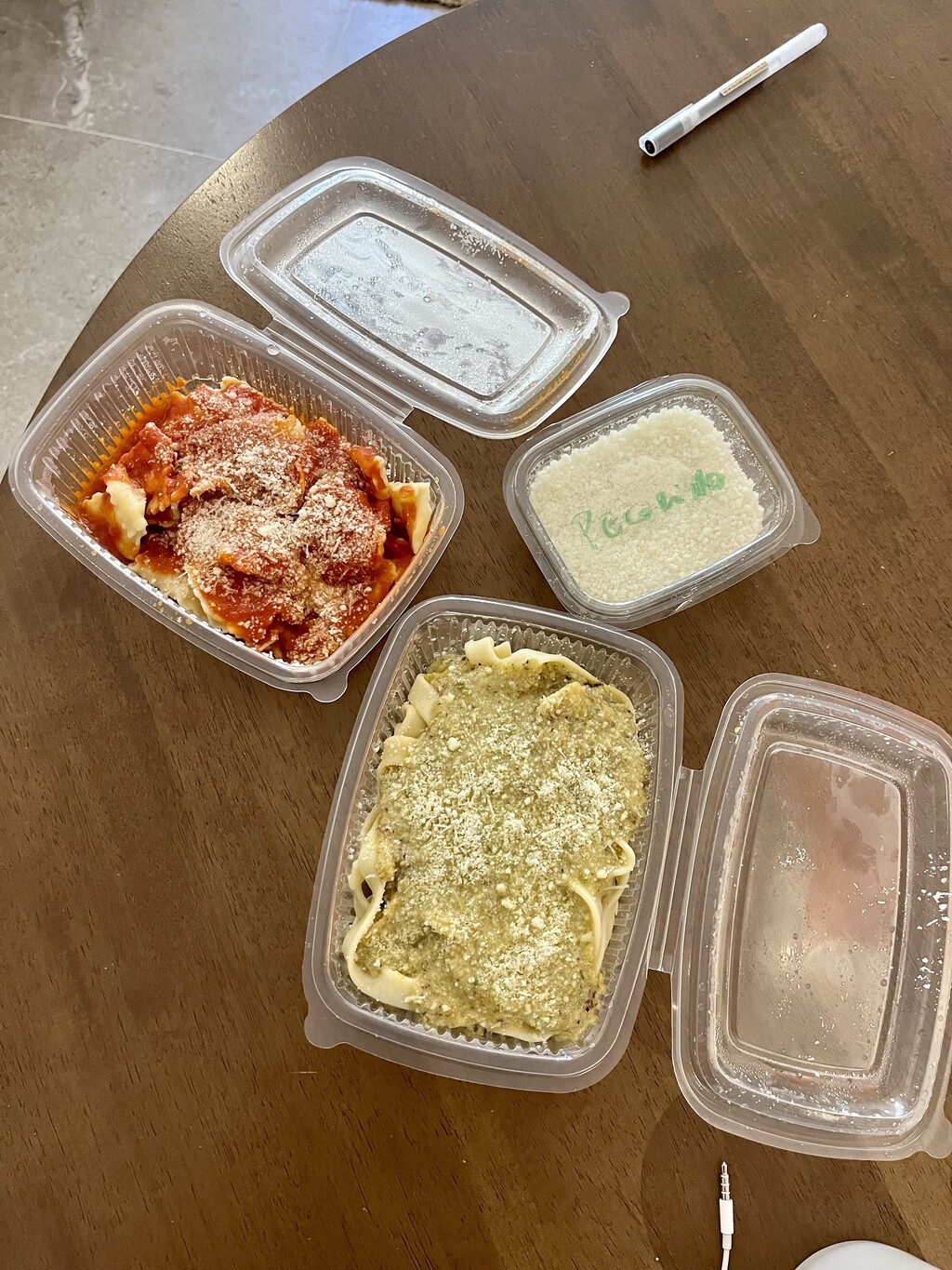 You can either purchase their homemade pasta uncooked without sauce to cook at home or you can buy the already cooked pasta of your choice with a homemade sauce or pesto of choice and have a whole meal ready.
