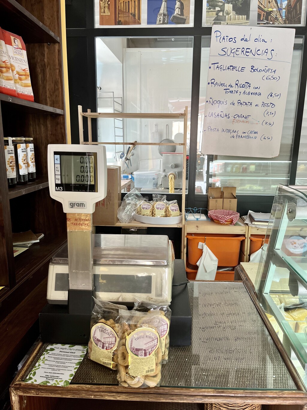 Since Christoph and I had just spent a month living and working in Italy a few weeks back, we were really happy when we discovered the “La Casa della Pasta” shop while exploring Granada. “Casa della Pasta” is a small shop in Granada that sells freshly made pasta and Italian cheeses and hams. The shop owners are Italian and bring the typical flavors and ingredients of their country to Granada.