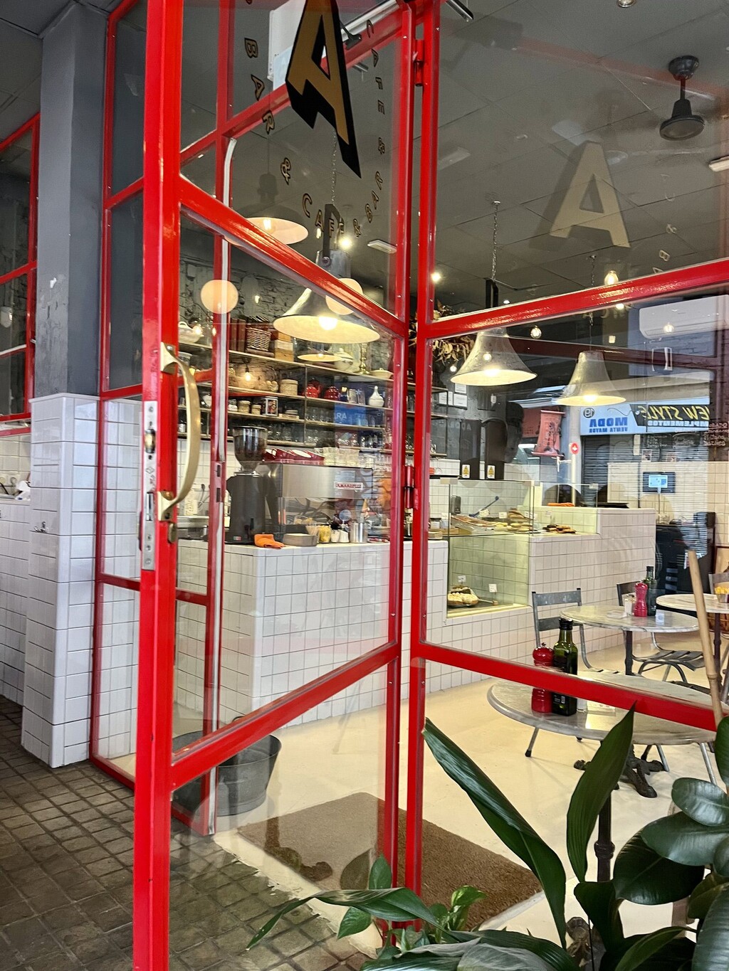 The Adorado looks like a mixture of a garage, a workshop and a modern café. It stands out with its industrial charm of white tiles, metal chairs and bright red painted metal window frames. However, you not only go there to enjoy their special interior design, but also for their outstanding coffee, delicious breakfast and fresh croissants and cakes.