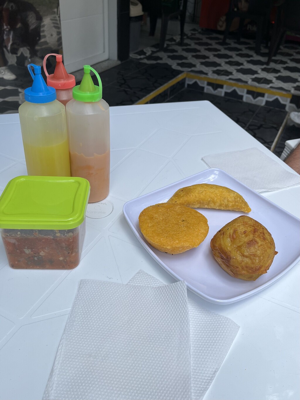 Like in every country we visit, Christoph and I were once again looking for delicious street food. This time in Medellín, Colombia! However, since we lived in a fairly quiet residential area in Medellín, this search turned out to be quite difficult. After a few days we came across a small restaurant that had no doors and was open to the street (therefore counting as a street food stall), where a lovely Colombian grandma was frying dough.