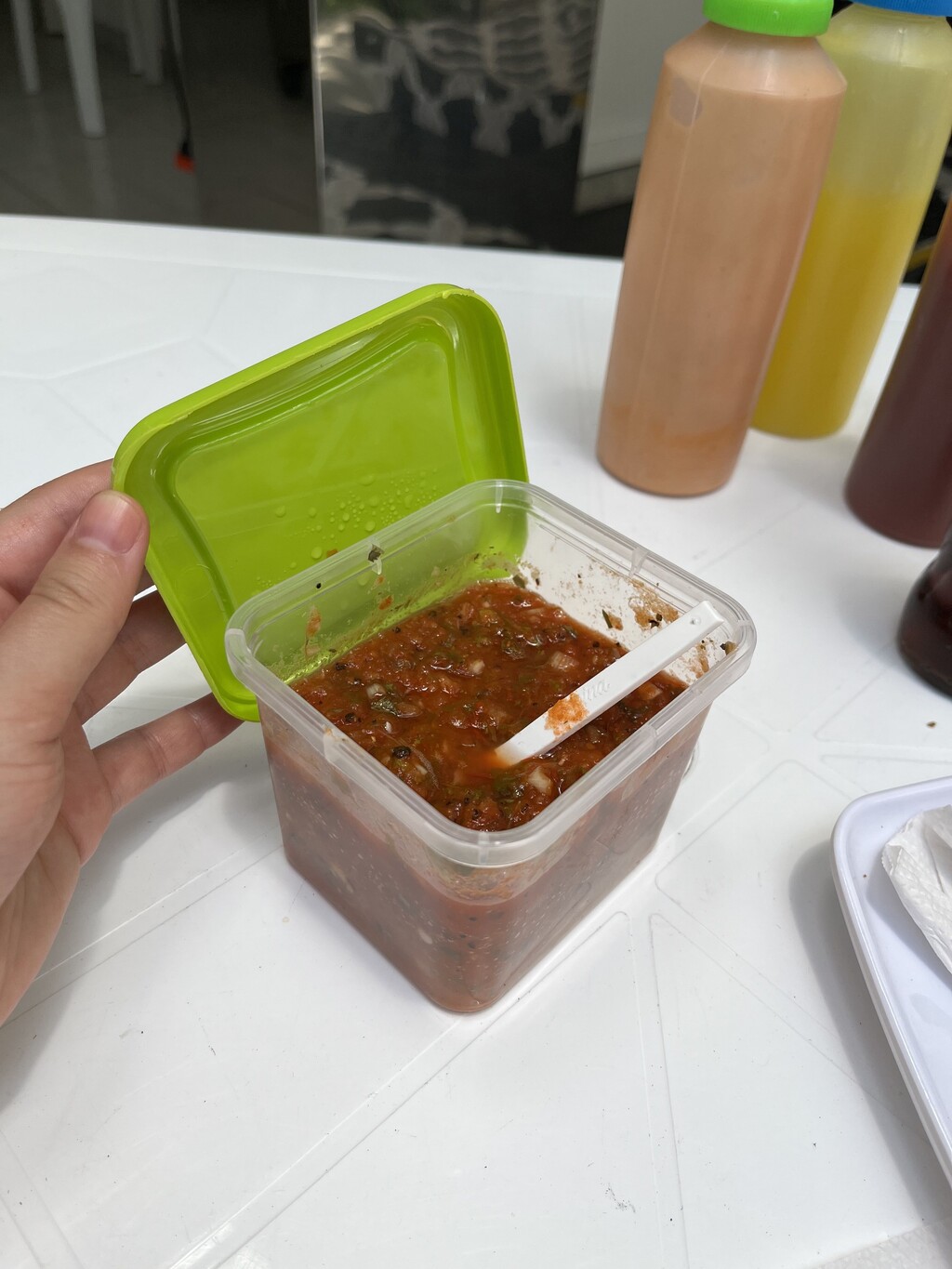 So we sat down and were served the empanadas we ordered. After the first bite, we noticed that the Colombian empanadas were completely different than we expected. We already knew and loved Peruvian empanadas and were kind of expecting a similar version but as it turned out Colombian empanadas differ from empanadas from Peru, Bolivia or Argentina primarily in that the dough is not made from wheat flour but from corn flour and that the empanadas are not baked in the oven but fried directly in fat. The empanadas here in Medellín were different than expected, but still delicious! What was particularly great was the large selection of homemade chili sauces, which the lovely empanada grandma was also very proud of. So if you’re looking for a tasty though not so light snack, you should definitely try the Colombian empanadas!