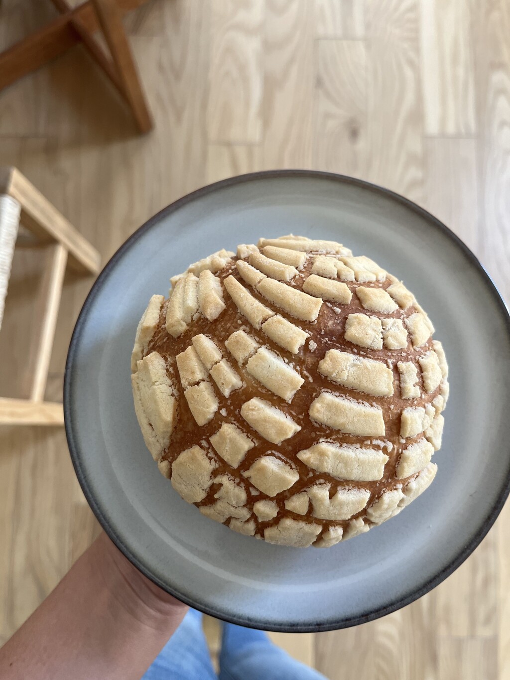 In the next weeks of our trip through Mexico we learned that in Mexico, pastries are particularly popular and, in our experience, it is unimaginable for many people in Mexico to drink a coffee without “algo para dipear” = “something to dip” (in this case meaning to dip some pastry into your coffee). The most popular baked goods here are “Conchas”, which translates to “shell” and are fluffy and sweet yeast rolls with a piece of buttery sugar cookie dough baked on top. This means the Concha pastry is a soft yeast roll and a sugar cookie combined into one pastry. Before baking the sugar cookie dough on the yeast roll is cut into several times which leaves the surface of the cookie looking like a sea shell which is why these pastries are called “Conchas” = “sea shell”. “Conchas” are generally available with either vanilla or chocolate sugar cookie dough on top and many Mexicans have very strong opinions about which of the two flavors is the right one.